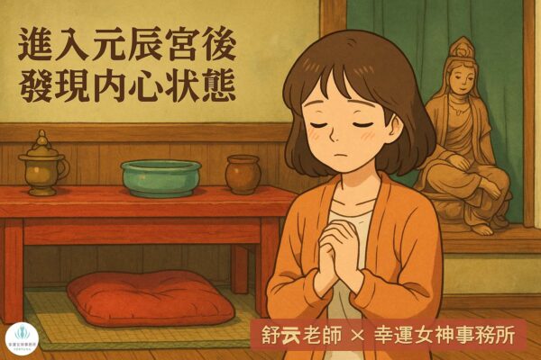 在這個迷茫的時刻,佳佳找到了幸運女神事務所,希望透過觀元辰宮的方式改善目前的困境。由於佳佳對元辰宮已有初步認識,因此在諮詢時我們很快進入狀況,我也特別安排她進行觀元辰宮的調整與補財庫。